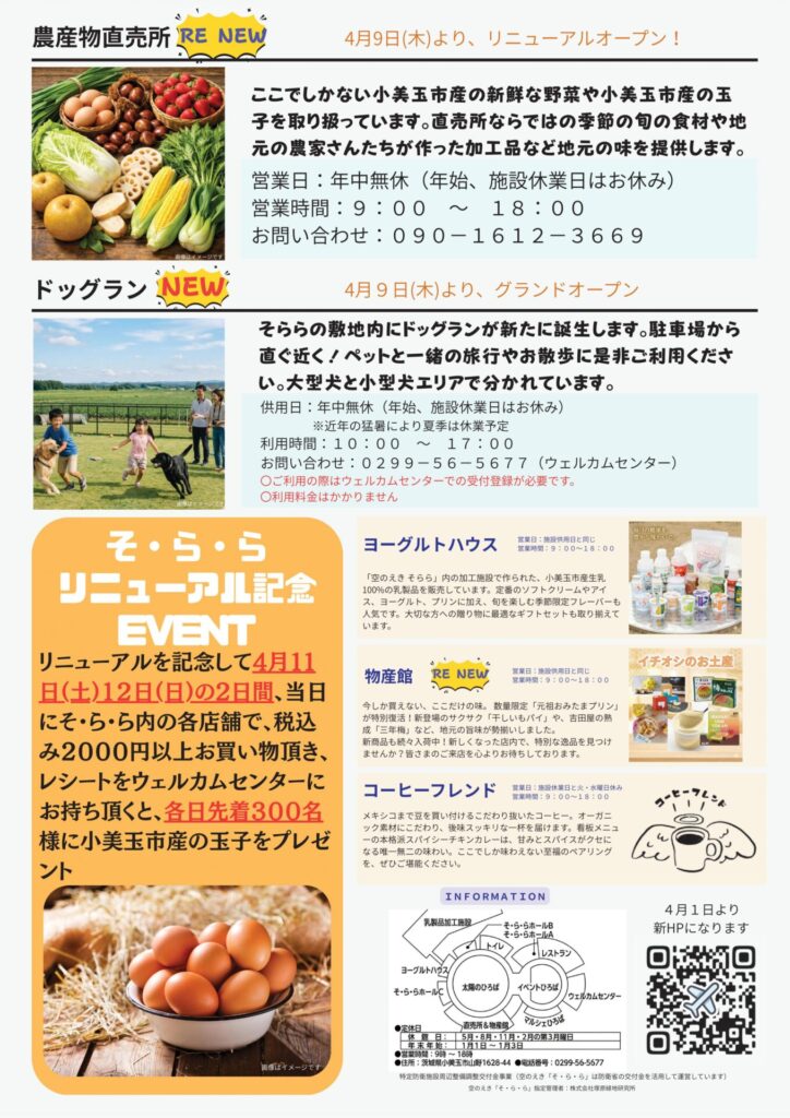 新たに地元小美玉の食材を使用したレストラン「おみたまキッチン」や野菜直売所、ドッグランなどがオープン!