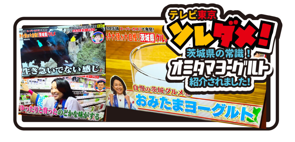 茨城ご当地スーパーのカスミで、干し芋や納豆とともにオミタマヨーグルトも紹介してくださいました。
